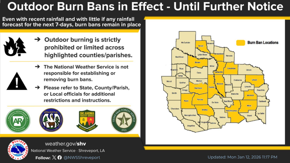 Local authorities stress that burn bans are issued and lifted by state, county, or local officials, not the National Weather Service. Residents are urged to check with county emergency management offices or local governments for specific rules and enforcement details in their area.