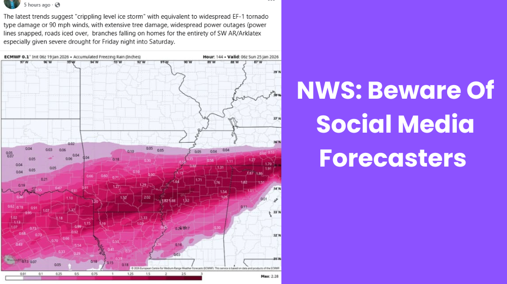 Residents across Southern Arkansas are encouraged to monitor official forecasts, avoid sharing unverified weather graphics, and continue checking updates as confidence in the forecast improves.