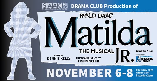 EL DORADO — The South Arkansas Arts Center (SAAC) Drama Club will bring Roald Dahl’s beloved story of imagination and courage to the stage this fall with its production of “Matilda the Musical JR.” The show will run November 6–8 at SAAC and will feature talented area students in grades 7–12.